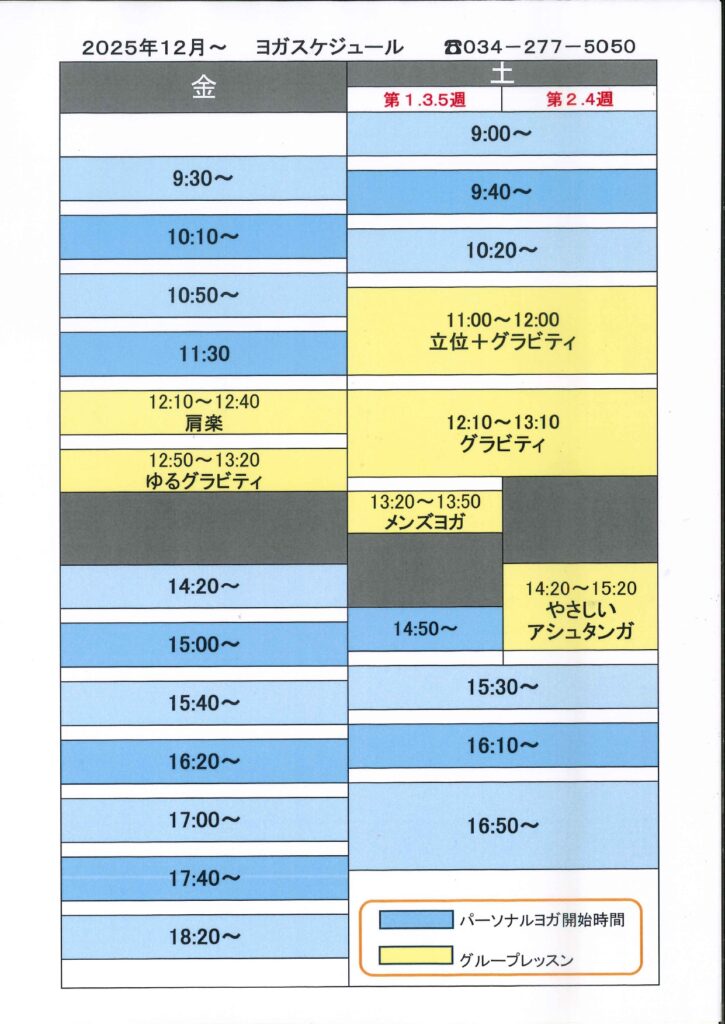 今月のグループレッスン|今月のヨガレッスン|追加スケジュール|お知らせ